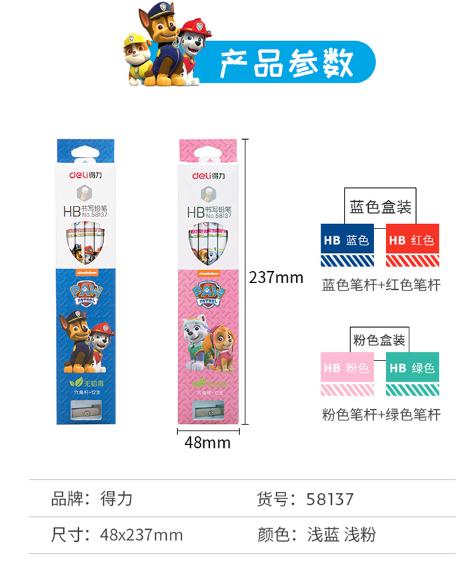 - 商品名称:得力58137_汪汪队立大功HB铅笔(蓝)(12支/盒) 12/盒/288/箱