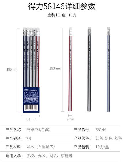 - 商品名称:得力58146_六角杆2B书写铅笔10支皮头(混) 12/盒/288/箱