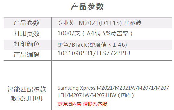 商品名称:天威 SAMSUNG-M2021(D111S)-黑色通用硒鼓带芯片 专业装 适用于M2021/M2021W/M2071 M2071FH/M2071W/M2071HW