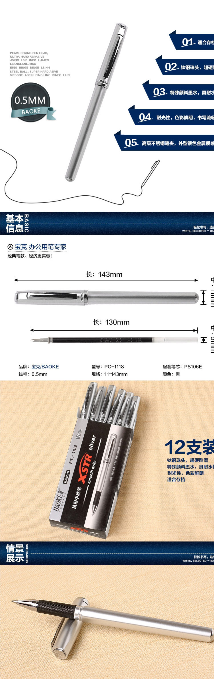 商品名称:宝克 PC1118中性笔(0.5mm)(黑色) (计价单位:支)
