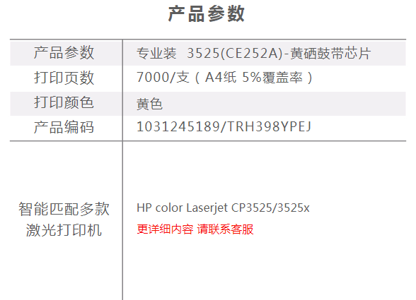 商品名称:天威 CE252A 通用硒鼓 黄色 专业装装 适用HP-3525(CE252A)3525N 3525DN 3530MFP