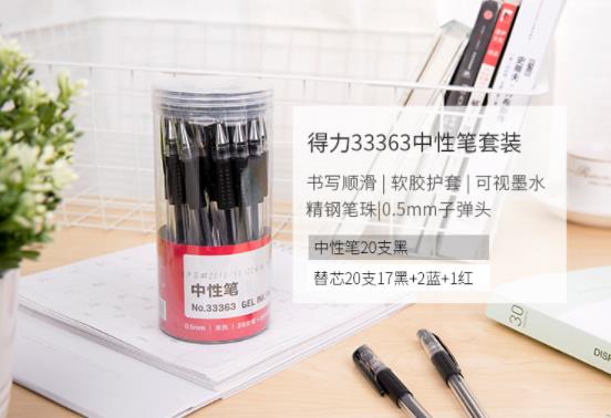 得力 33363 中性笔(混)((20支笔+20支芯)/桶) 12/盒/48/箱 (计价单位:桶)