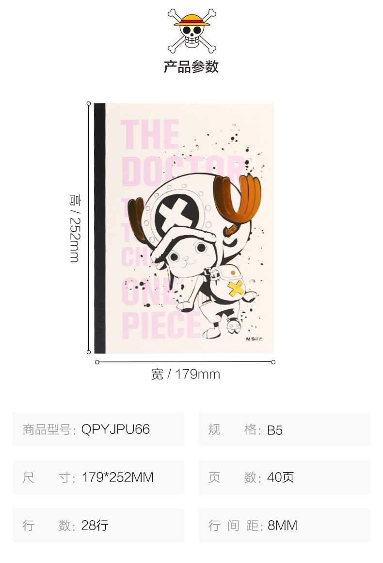 商品名称:晨光 QPYJPU66 B5 40页无线装订本40页航海王系列 4本/盒