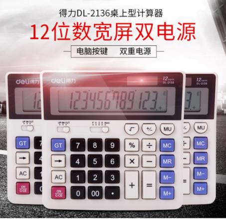 商品名称:得力 2136 12位大屏横式桌面计算机 财务及银行人员 (白) 10/盒/40/箱