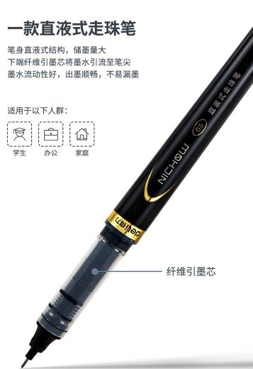 得力 S851 直液式走珠笔0.5mm全针管(黑)(12支/盒) 12/盒/144/包1728/箱 (计价单位:支)
