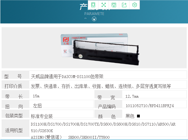商品名称:天威 DBSCOM-DS1100-21m,12.7mm-黑色左扭架 用于DS1100/DS1100H/DS1700 SK800/SK800II/TY800 AR500/AR510/GI630K