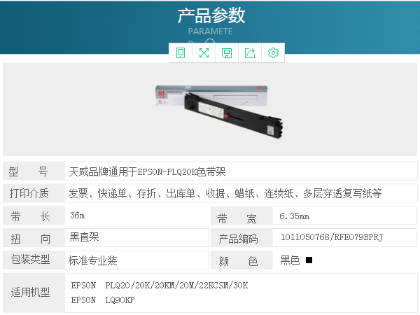 商品名称:天威 EPSON-PLQ20K-36m,6.35mm-黑色直架 用于PLQ20/20K/20KM/20M/22KCSM/30K LQ90KP