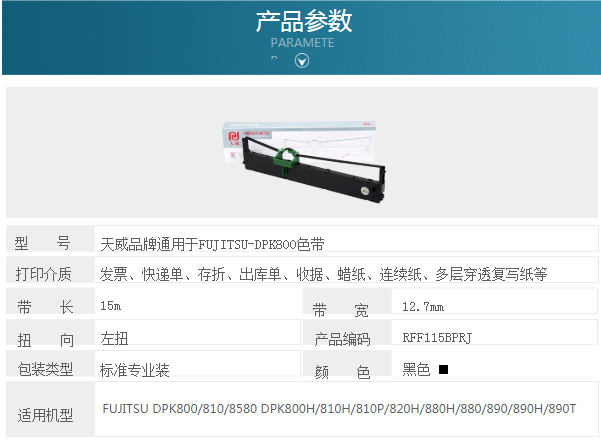 商品名称:天威 FUJITSU-DPK800-15m,12.7mm-黑色左扭架 用于DPK800/810/8580/6850 DPK800H/810H/810P