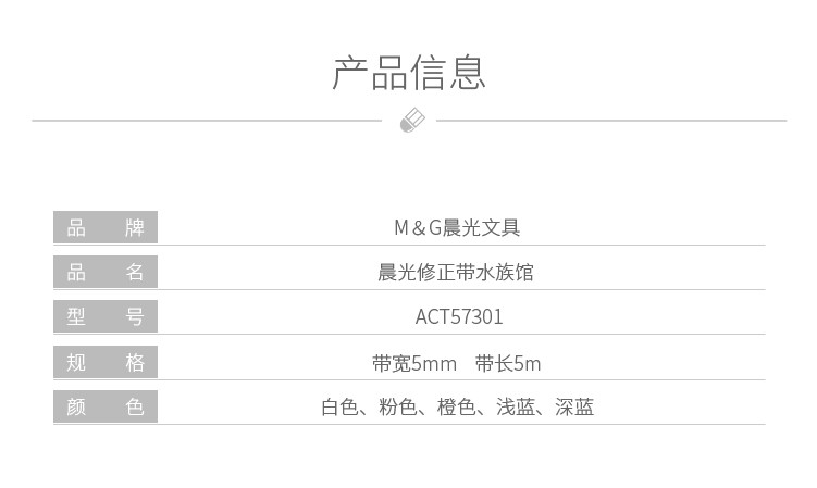 商品名称:晨光 ACT57301 修正带水族馆白5m 12支/盒/432支/包