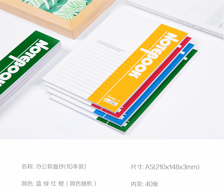 商品名称:广博(GuangBo)A5笔记本子办公记事本学生日记本软抄本 40张 (计价单位:本)