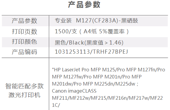 商品名称:天威 CF283A 黑色通用硒鼓 专业装适用于惠普M125 Pro MFP M127fn Pro MFP M127fw Pro打印机通用硒鼓 带