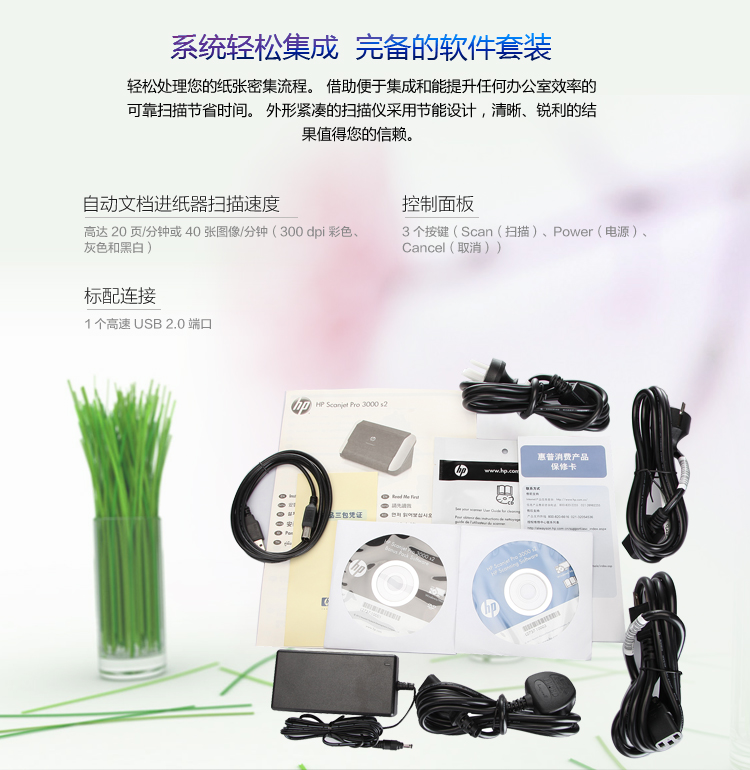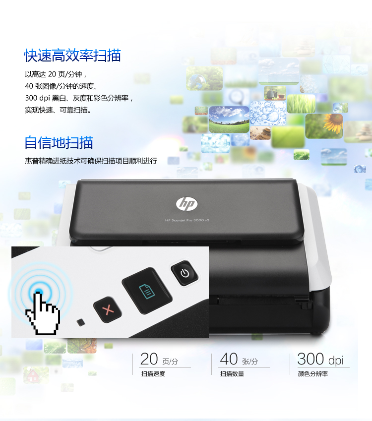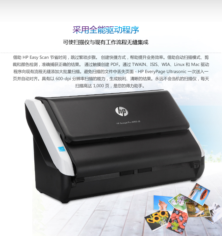 商品名称:惠普 HP SCANJET PRO 3000 S2 馈纸式扫描仪