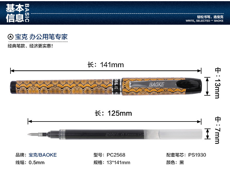 商品名称:宝克 PC2568中性笔 黑色(0.5mm)