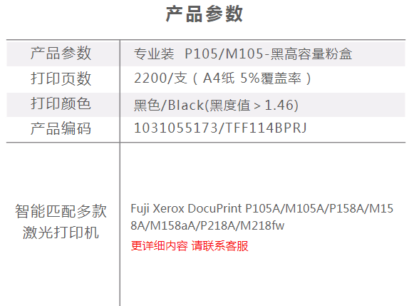 商品名称:天威 XEROX-P105/M105-黑色高容量粉盒 专业装 适用于P105A/M105A/P158A M158aA/P218A/M218fw