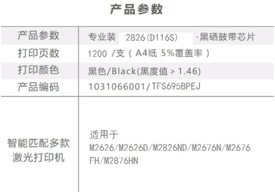商品名称:天威 D116S粉盒 通用硒鼓 专业装 适用于Samsung M2626/M2626D/M2826ND/M2676N/M2676FH/M2876HN