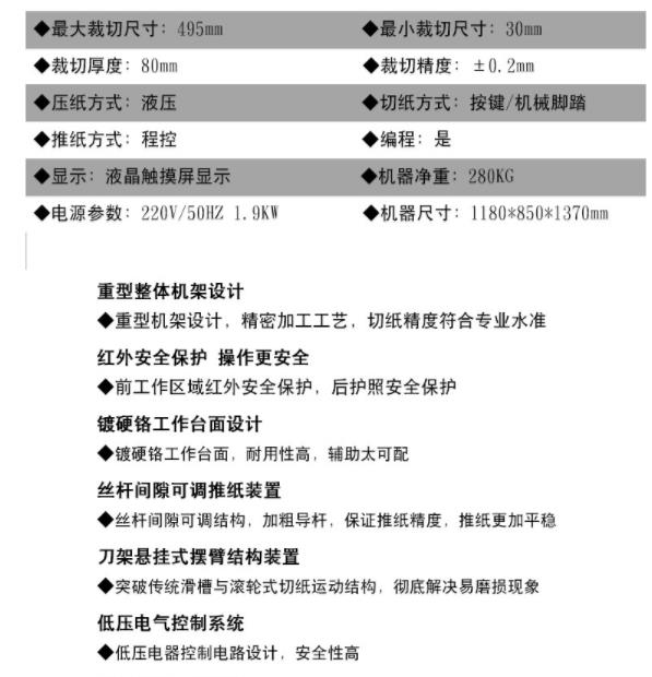 商品名称:道顿(DOCON) DC-8495HP 双液压程控切纸机 程控电动标书 文件 书籍重型切纸刀 裁纸机 DC-8495HP
