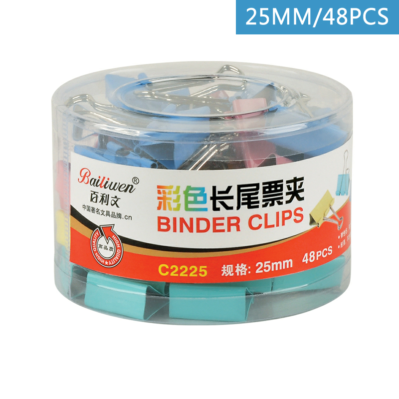 - 商品名称:百利文彩色长尾夹PVC筒装25MM