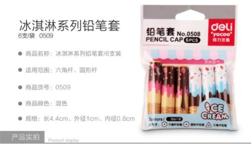 商品名称:得力 优酷 0508 铅笔套(混)(6个/包) 36/盒/1080/箱 (计价单位:包)