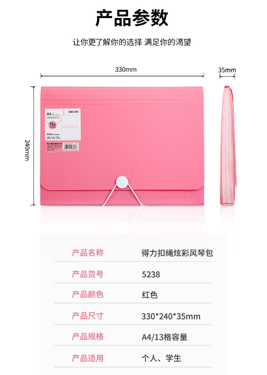 商品名称:得力5238风琴包(红) 12/盒/48/箱