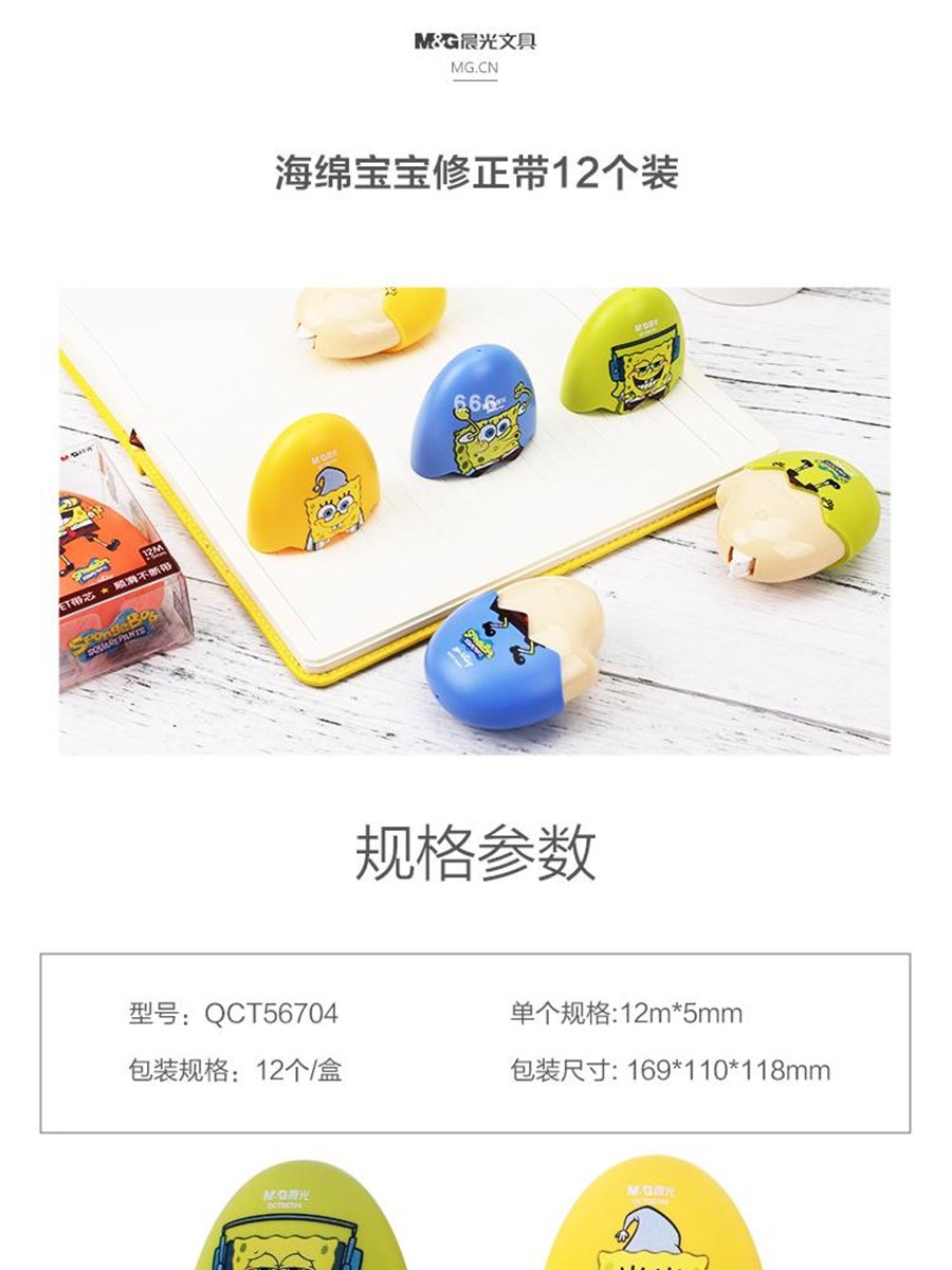 商品名称:晨光 QCT56704 修正带海绵宝宝白12m 12支/盒/720支/包