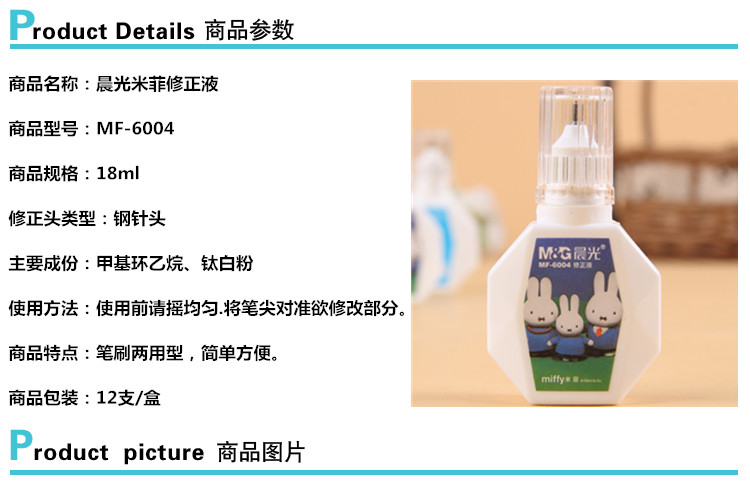 商品名称:晨光 MF6004 米菲3D修正液 12支/盒