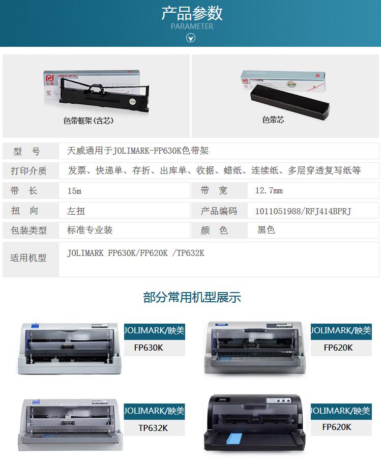 商品名称:天威JOLIMARK-FP630K-15m,12.7mm-黑色左扭架适用于FP630K/FP620K /TP632K