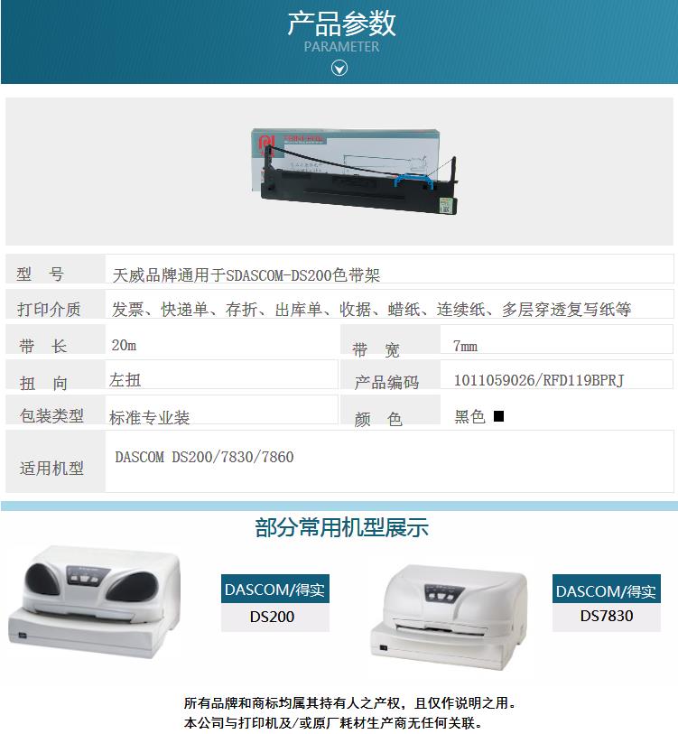 商品名称:天威 DASCOM-DS200-20m,7mm-黑色左扭架适用于DASCOM DS200/7830/7860