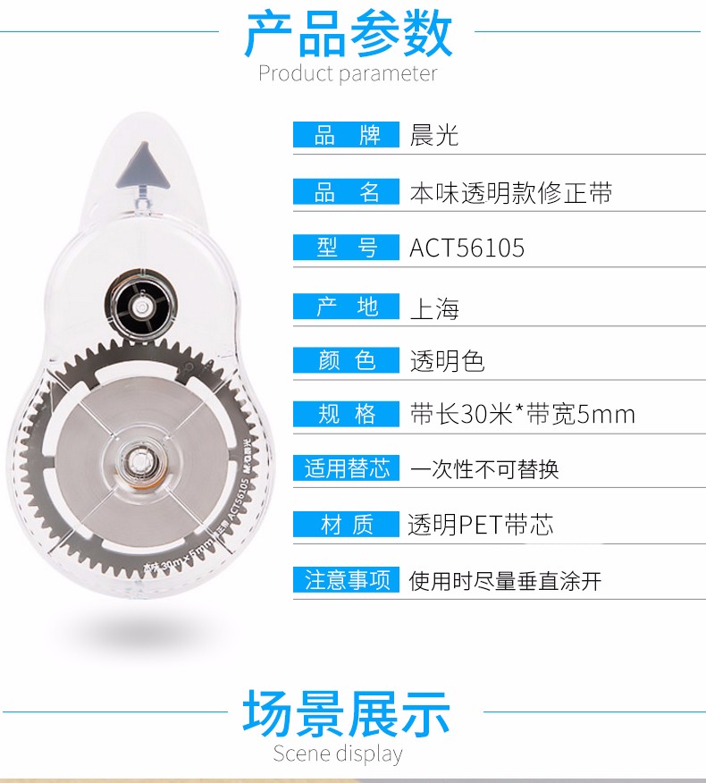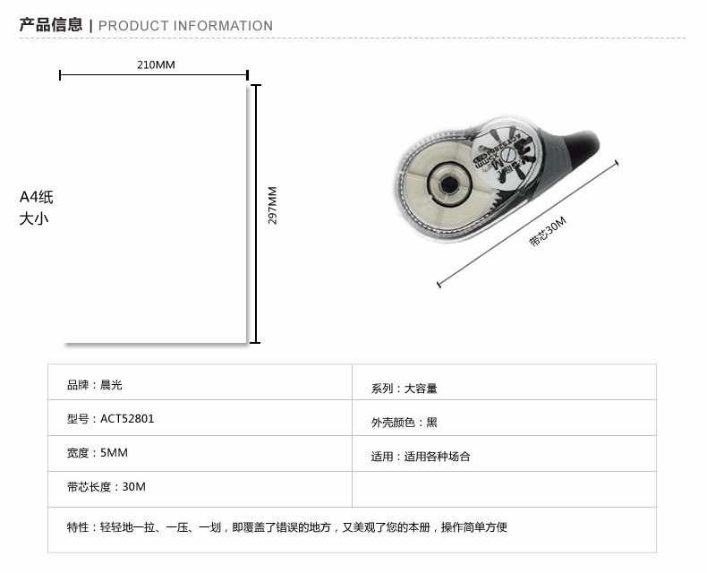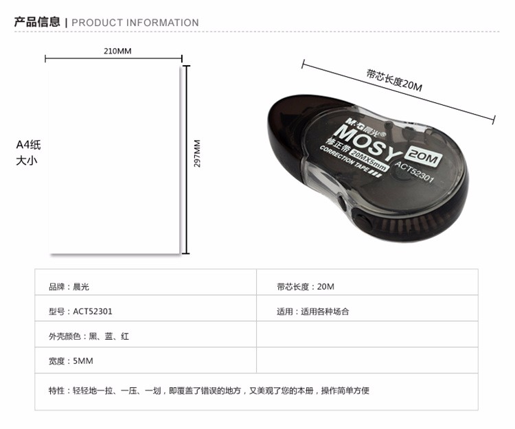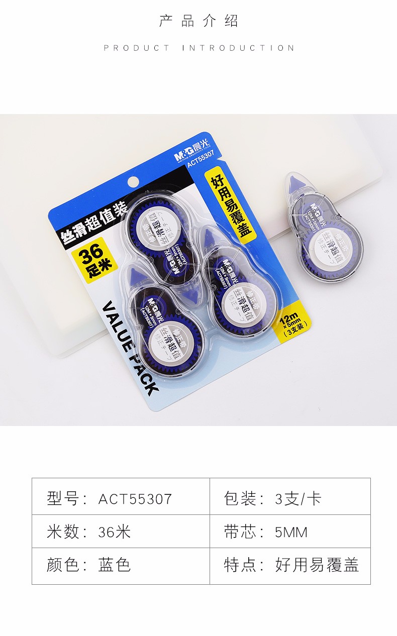 商品名称:晨光 ACT55307 12m修正带丝滑超值装 3个/卡