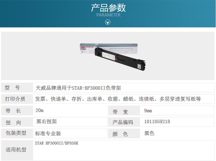 商品名称:天威STAR-BP3000II-25m,9mm-黑色左扭架适用于BP3000II/BP850K/STAR BP-850