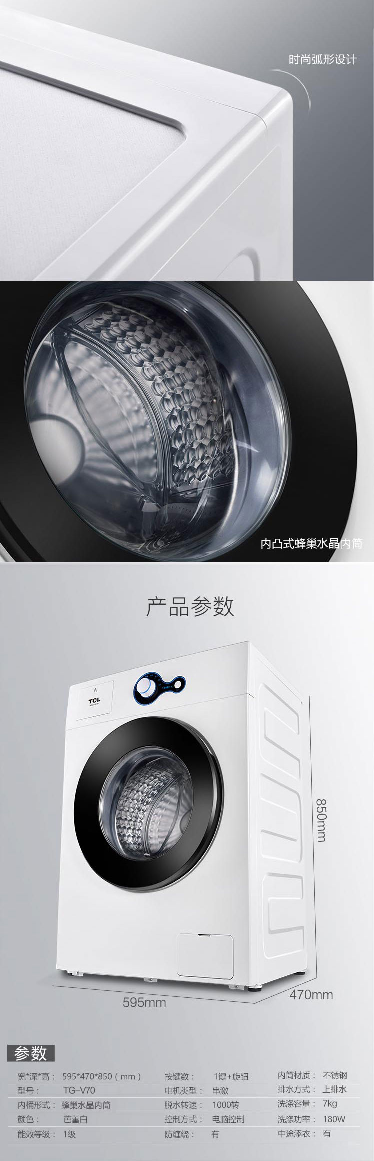 商品名称:TCL TG-V70 7公斤滚筒洗衣机滚筒洗衣机 芭蕾白