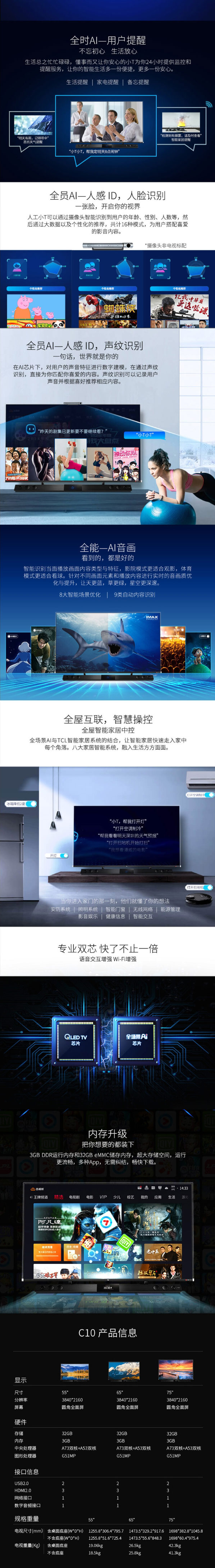 商品名称:TCL 65C10 65英寸液晶电视机 4k超高清 量子点全面屏 智慧屏 前置独立音响 157%超高色域