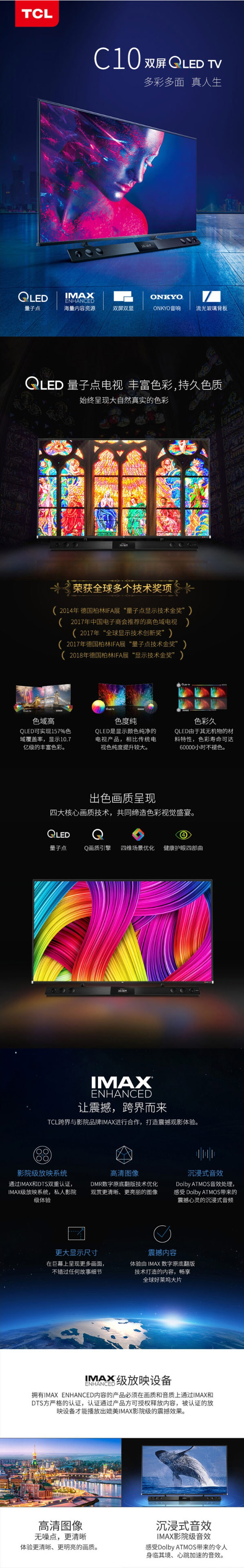 TCL 65C10 65英寸液晶电视机 4k超高清 量子点全面屏 智慧屏 前置独立音响 157%超高色域