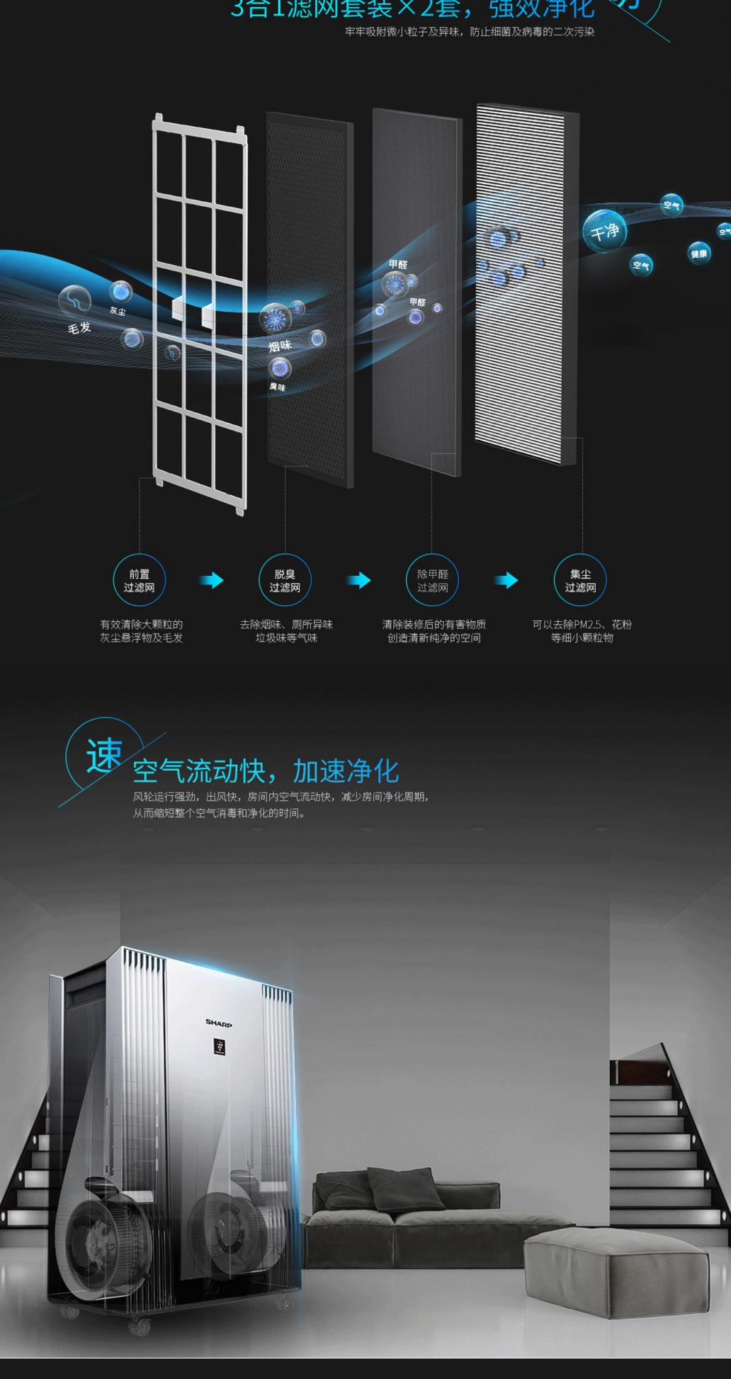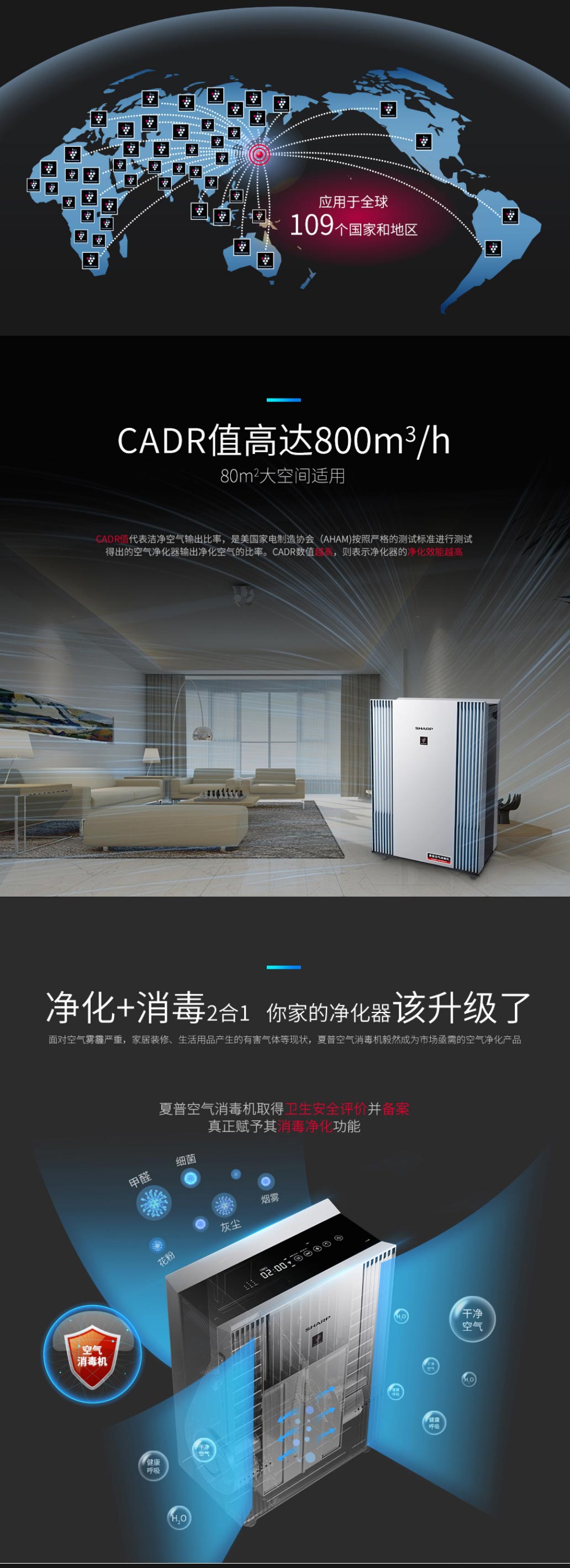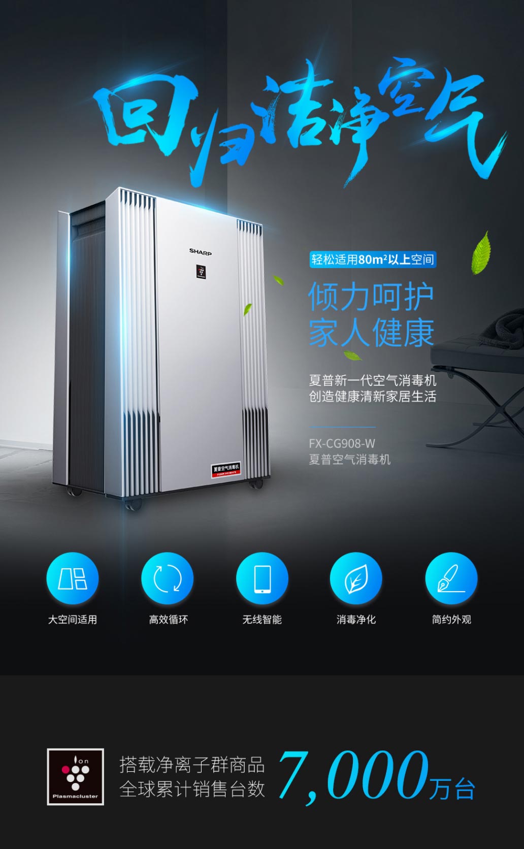 夏普SHARP空气净化器FX-CG908-W商用高端家用智能微信清除PM2.5甲醛雾霾病菌医用消毒机