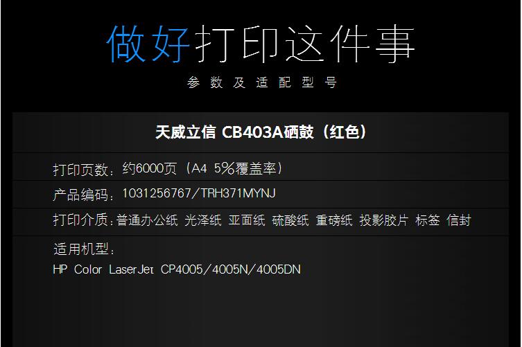 商品名称:天威立信 HP-4005(CB403A) 红通用硒鼓带芯片适用于CP4005/4005N/4005DN 立信装