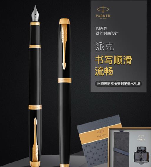 商品名称:派克 PARKER 16款IM 纯黑丽雅金夹 钢笔/墨水笔+新款墨水礼盒套装