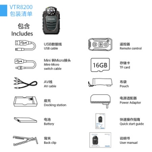 - 商品名称:飞利浦(PHILIPS)VTR8200 便携音视频执法记录仪 1296P高清摄像机 激光定位 16G