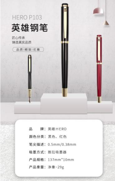 商品名称:英雄(HERO)P103 红色宝珠笔签字笔0.5mm (计价单位:支)