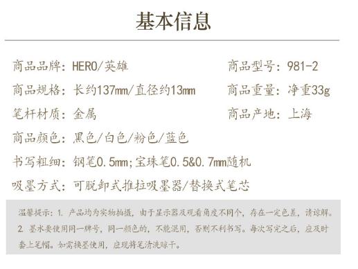 商品名称:英雄(HERO)981-2 铜杆粉红金夹宝珠笔 (计价单位:支)