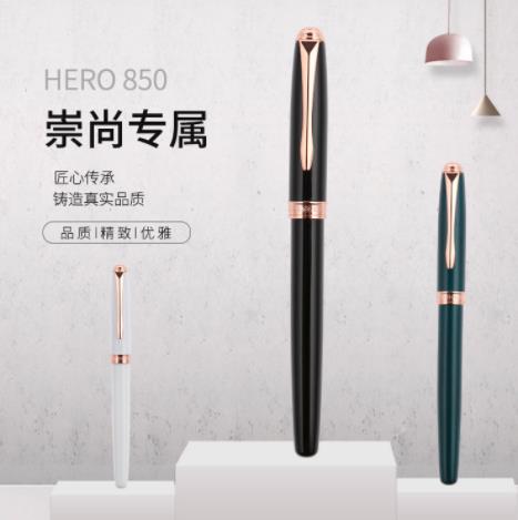 英雄(HERO)钢笔文具时尚男女铱金钢笔商务办公个性墨水笔礼盒套装 850 黑色