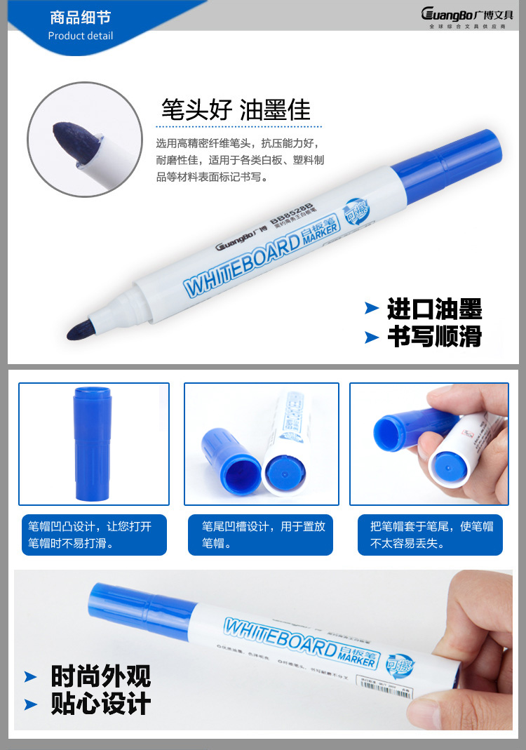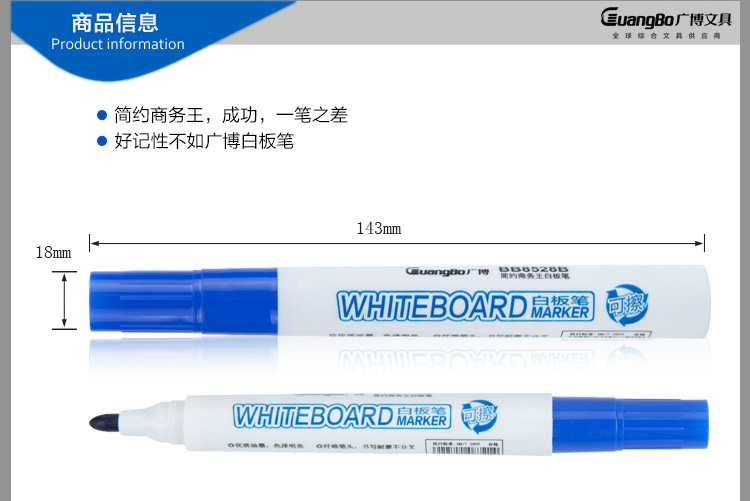 商品名称:广博 BB8528B 简约商务王白板笔(蓝色) (计价单位:支)