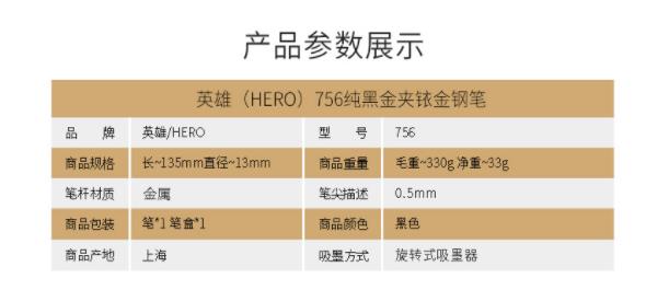 商品名称:英雄(HERO)黑色铱金钢笔墨水笔暗尖 756