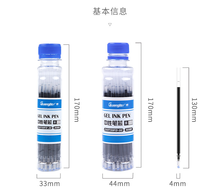 商品名称:广博 ZX9T09FD-50 中性笔芯0.5mm黑色(50支/桶) (计价单位:桶)