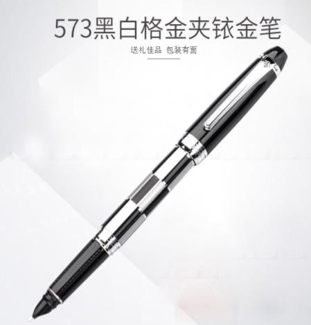 英雄(HERO)黑灰方格铱金钢笔墨水笔特细暗尖 573