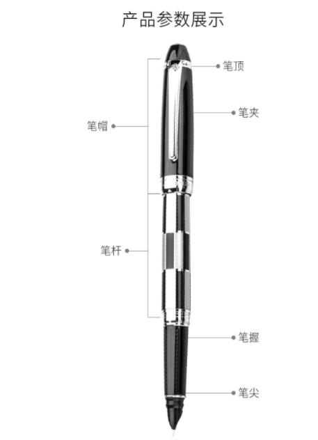 商品名称:英雄(HERO)黑灰方格铱金钢笔墨水笔特细暗尖 573