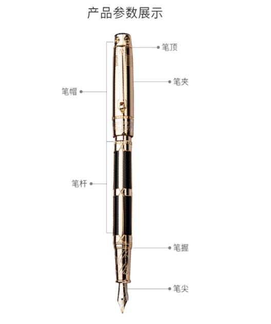 商品名称:英雄(HERO)黑杆(10K)金尖钢笔墨水笔金笔 2065