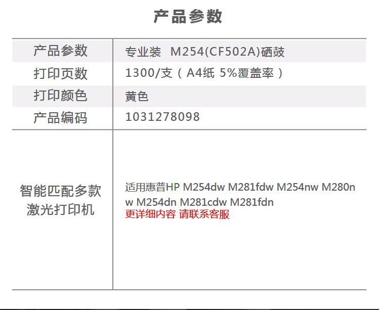 商品名称:天威 HP-M254(CF502A)-黄通用硒鼓带芯片 适用于M254/M254dw/M254nw M280nw/M281/M281fdw