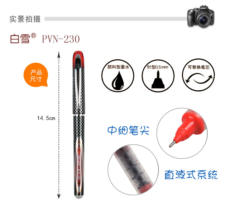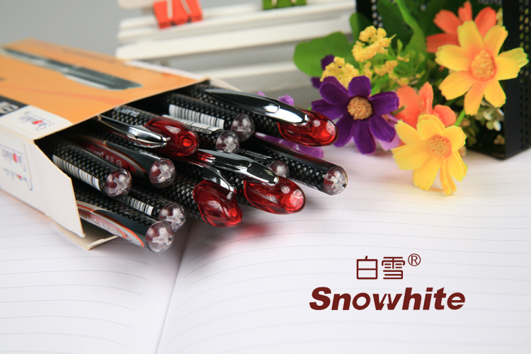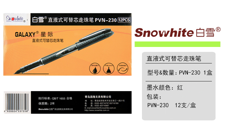 - 商品名称:白雪(snowhite) PVN-230 黑色/红色直液式走珠笔 可换芯 12支装