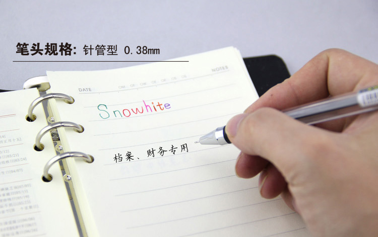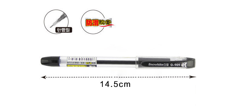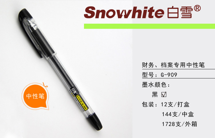 - 商品名称:白雪(snowhite)G-909 黑色针管型财务用签字笔可换芯 0.38MM 12支装
