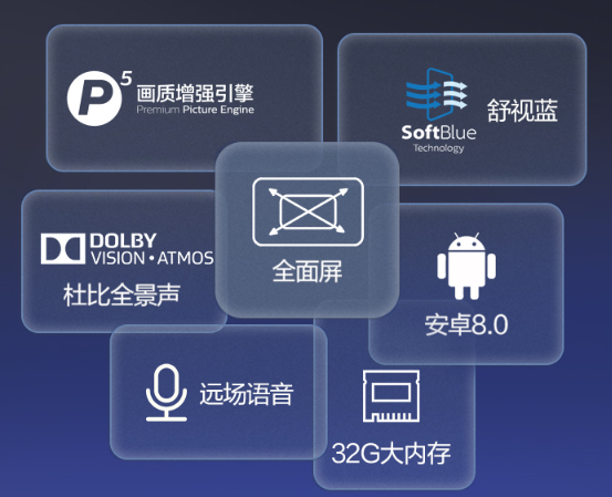 商品名称:飞利浦(PHILIPS)70PUF8005/T3 70英寸 远场语音全面屏 护眼舒视蓝 杜比4K 3+32G运动防抖电视