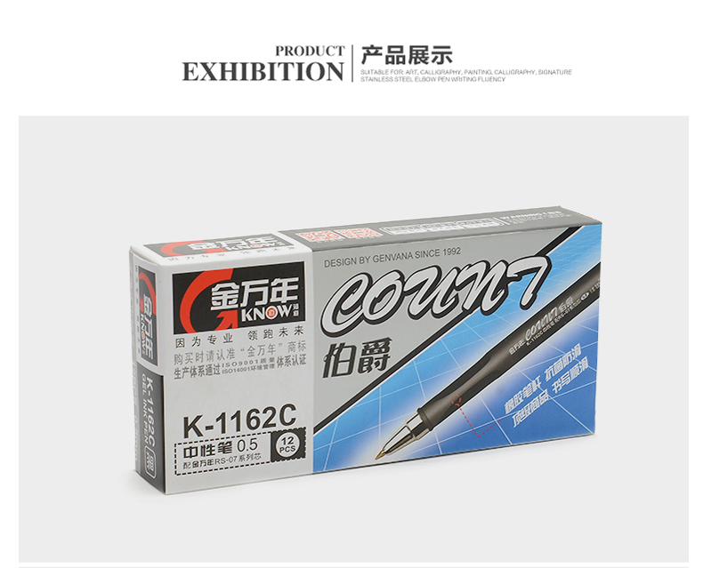 商品名称:金万年伯爵 0.5mm商务签字笔 12支/盒